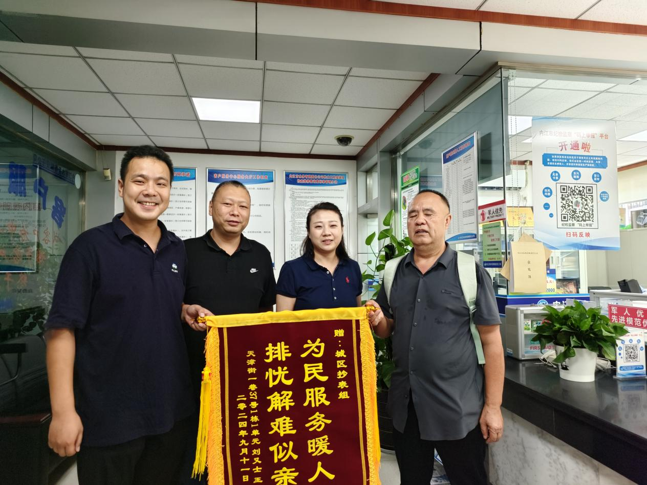9月11日,用户刘先生特意送来一面锦旗,表扬我司抄表人员的专业、细心和热情。民生无小事、件件是大事,未来水务人将继续为用户提供便捷、贴心的用水服务,为群众办实事、办好事、解难题,不断提高老百姓用水获得感、幸福感、安全感。