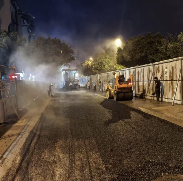 在施工收尾的关键阶段,国产自拍 工程管理部与豪盛市政工程公司等部门和单位在该项目中展现了高度配合与积极协作的精神。项目团队秉持“抢工期、保质量、惠民生”的原则,克服了连续高温、夜间作业、环境复杂等多重困难。为最大限度减少对交通的影响,项目组采取了“分段围挡、错峰施工”的策略,并与交警部门协同优化临时导行方案,增设夜间警示灯、临时减速带等安全保障措施。目前,该路段路面已恢复完毕,按期恢复通行。