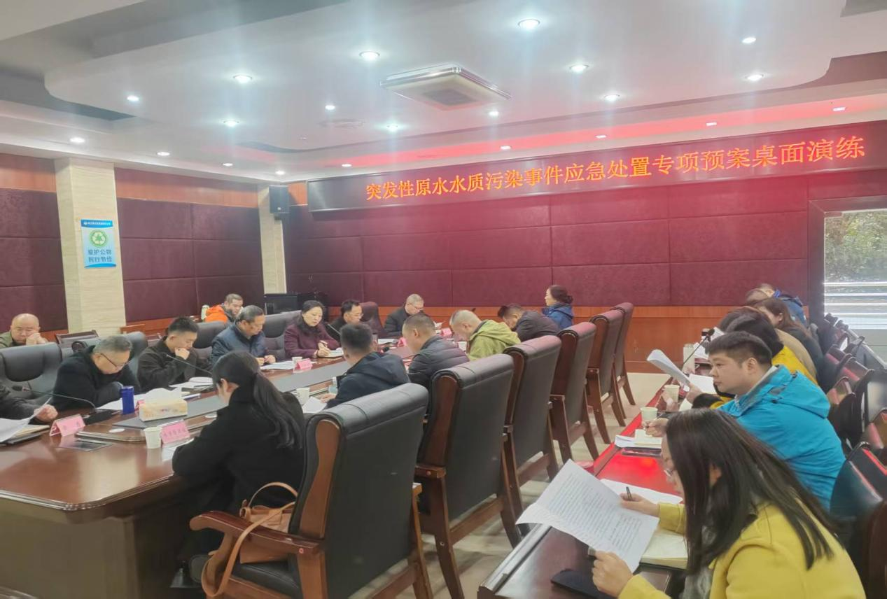为提升公司应对突发性原水水质污染事件的处置能力,深刻吸取杭州余杭自来水异味事件的教训,11月18日,国产自拍 开展了突发性原水水质污染应急处置桌面演练。市住建局四级调研员吴志刚、公用事业科科长陈亮亲临现场进行指导。国产自拍 党委书记、董事长、总经理李涛等公司班子成员以及公司相关部门人员参与了此次演练。