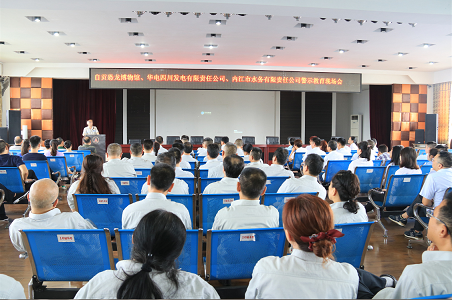 为加强公司管理人员和关键岗位人员廉洁从业教育,增强法制观念,筑牢拒腐防变的思想防线, 7月5日上午, 水务公司组织中层及以上管理人员和关键岗位人员共计50人,前往自贡监狱接受警示教育。