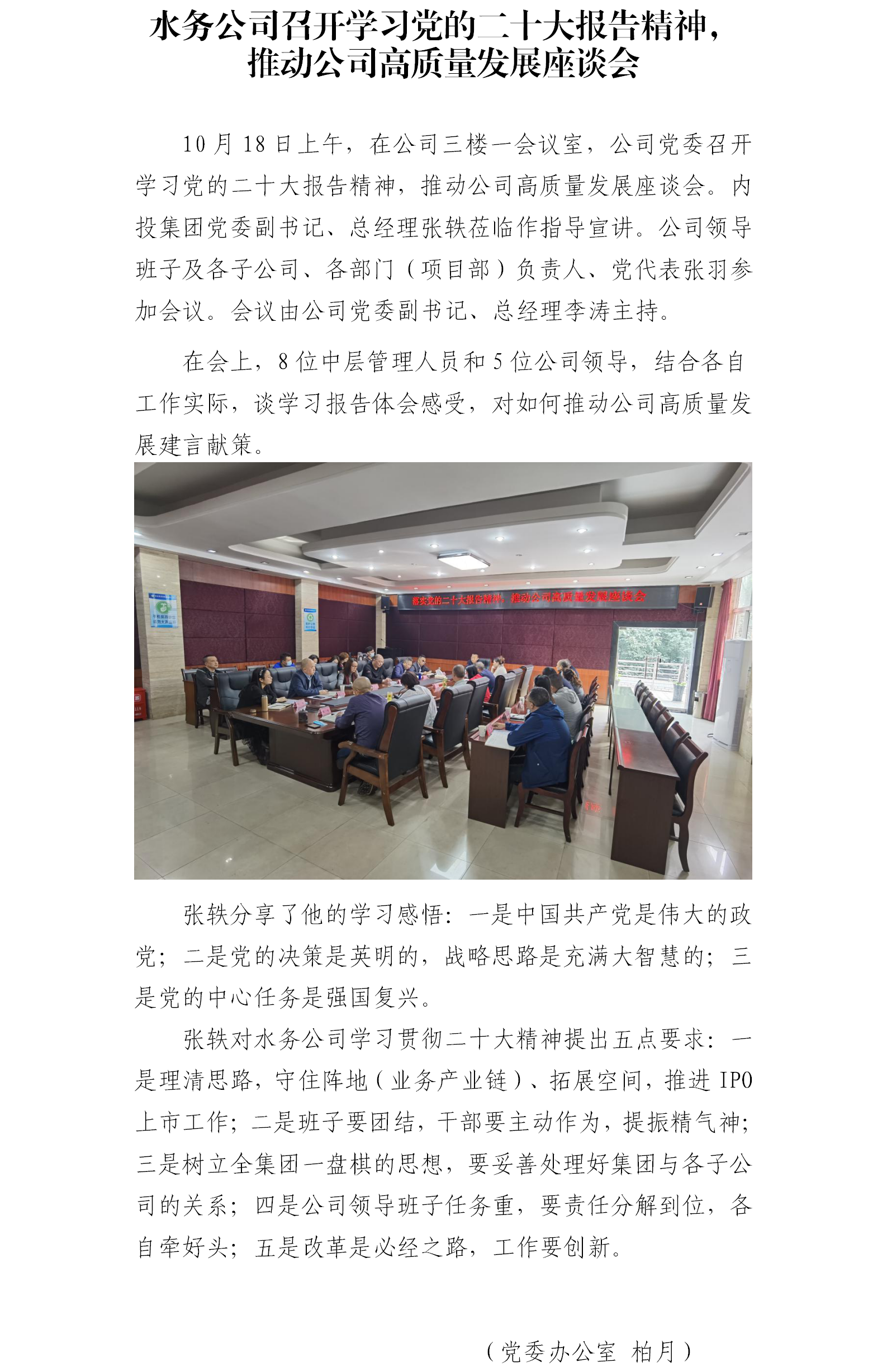 水务公司召开学习党的二十大报告精神, 推动公司高质量发展座谈会