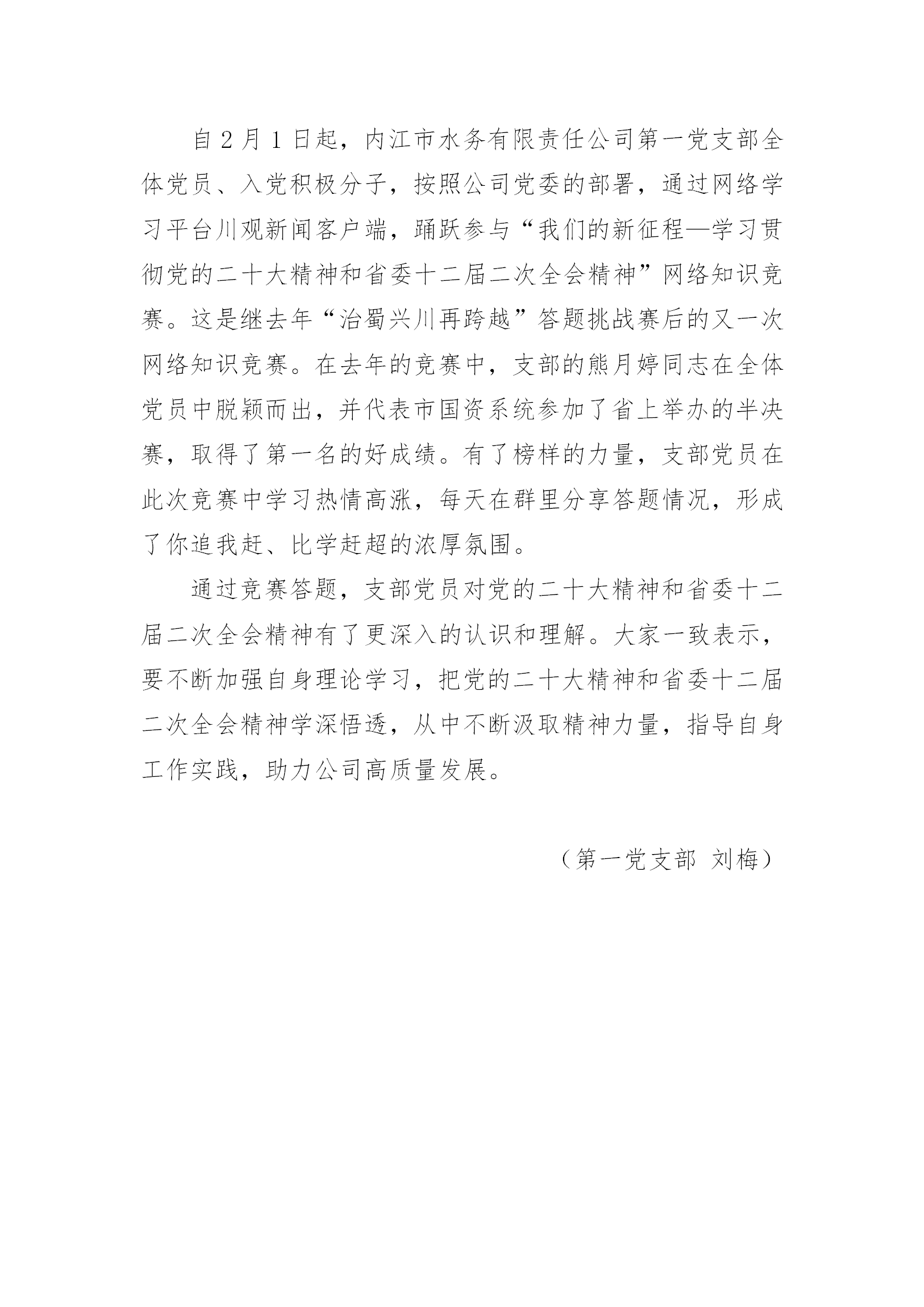第一党支部积极参与“学习贯彻党的二十大精神暨省委十二届二次全会精神”网络知识竞赛