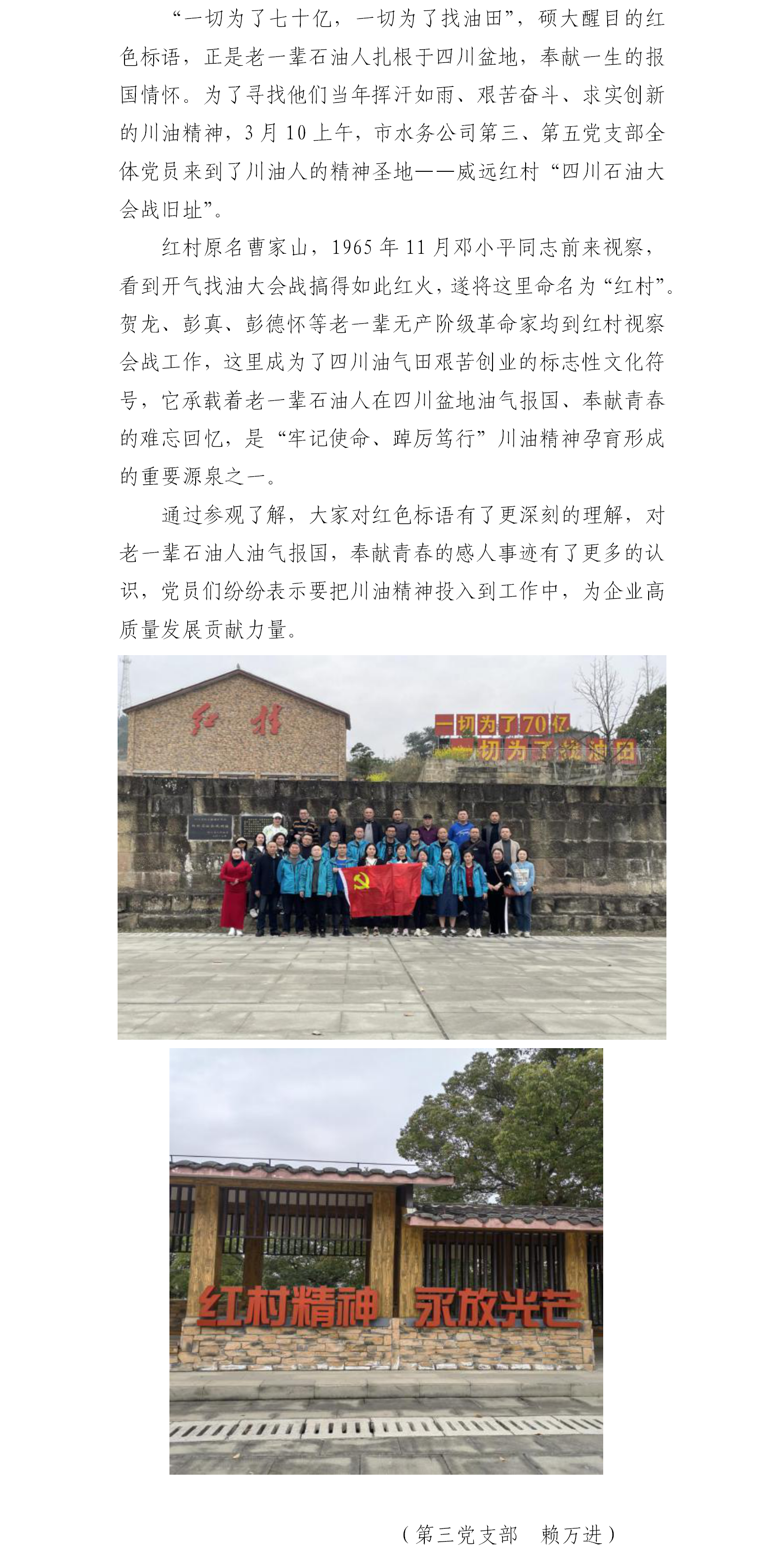 党支部联合开展主题党日活动—— 参观川油人的精神圣地:“红村”
