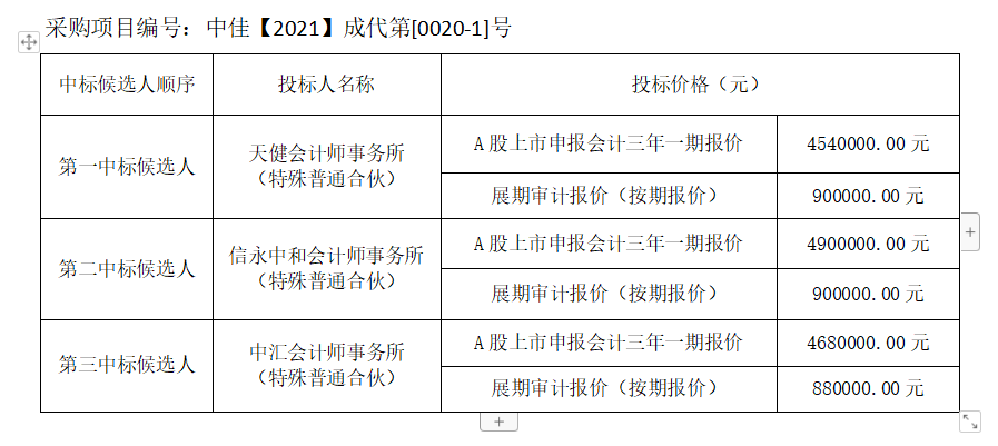 内江市水务有限责任有限公司首次公开发行A股上市会计师事务所选聘项目(第二次)评标结果公示