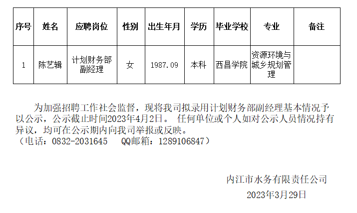 国产自拍 拟录用计划财务部副经理公示