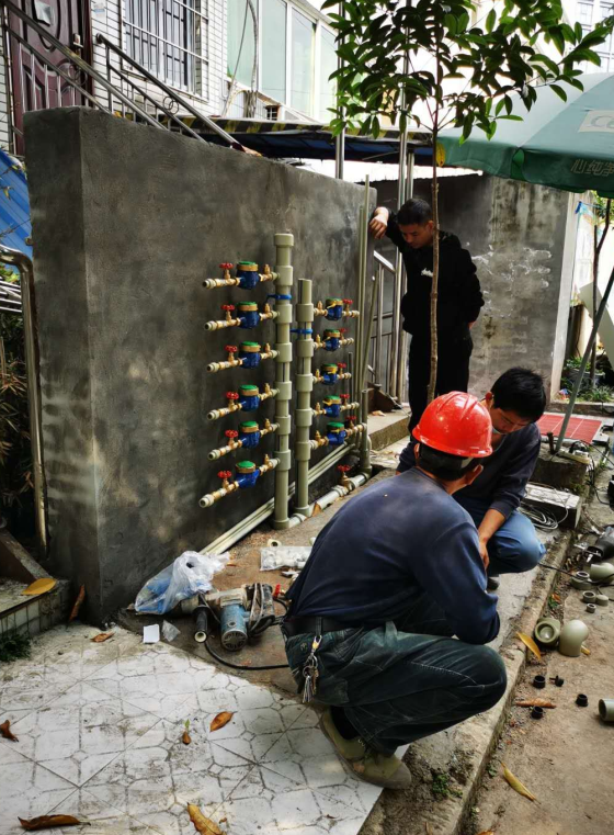 在做好安全防护准备后,历经4天的清淤转移,2天的钻孔开窗、管沟开挖、新表墙砌筑,2天的集中攻关改管后,将原有表位废除迁改,在4月30日完成整改工作,确保了“五一”期间经营户的正常营业用水。