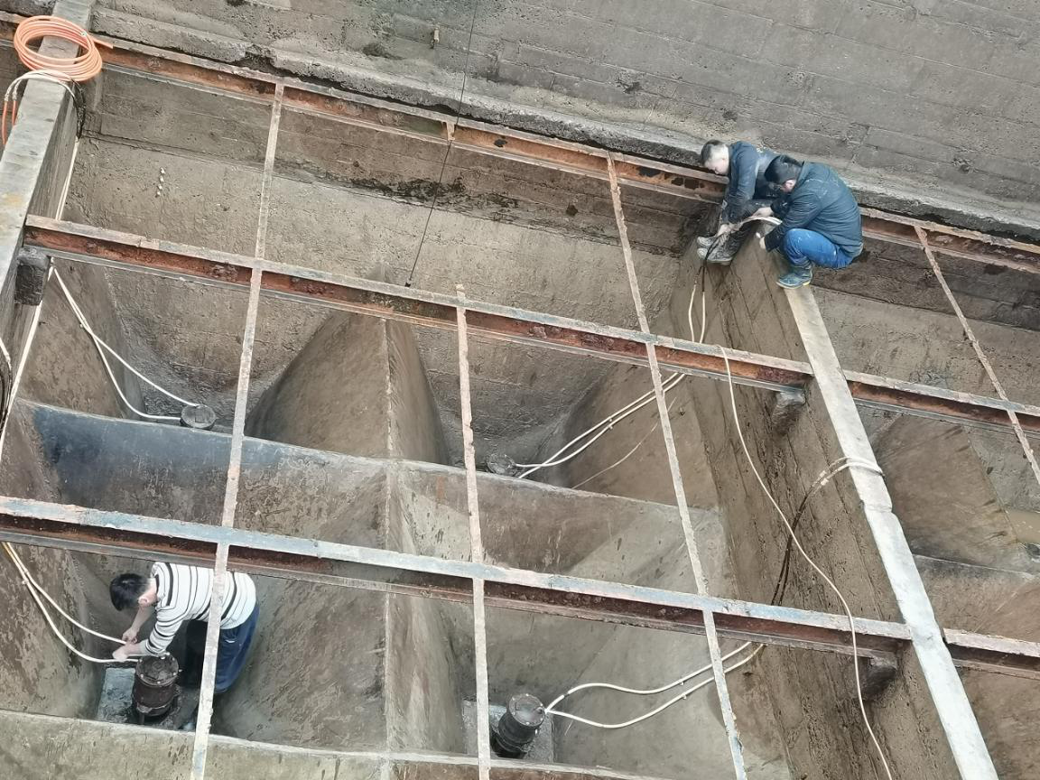 为提高生产运行可靠性,保障安全供水,二水厂结合浮沉池斜板改造工作,同步推进池底阀检修,既节约时间又降低生产能耗。在池底阀检修工作中,我厂维修人员不惧风雨、不畏艰辛,根据工作需要主动加班加点,用实际行动诠释水务人保安全供水的决心。