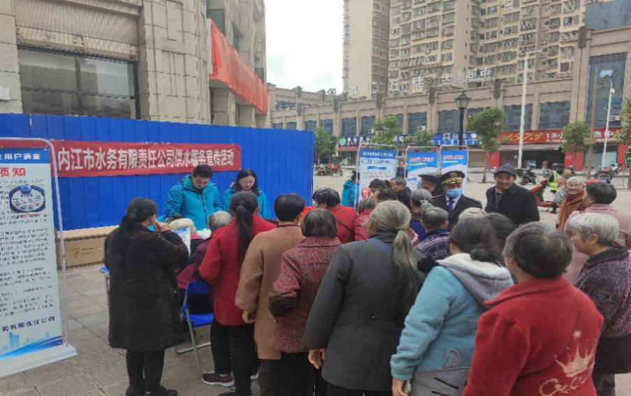 10月27日下午,国产自拍 客户服务部、生技部、二次供水服务公司联合开展了宣传进社区活动。工作人员统一着装,党员佩戴党徽,现场与内江市汉祥小区居民开展“面对面、零距离”交流。讲解二次供水、阶梯水价、垃圾处理费、水费单价生成等用户关心的问题,并提倡大家节约用水,宣传水资源的重要性。