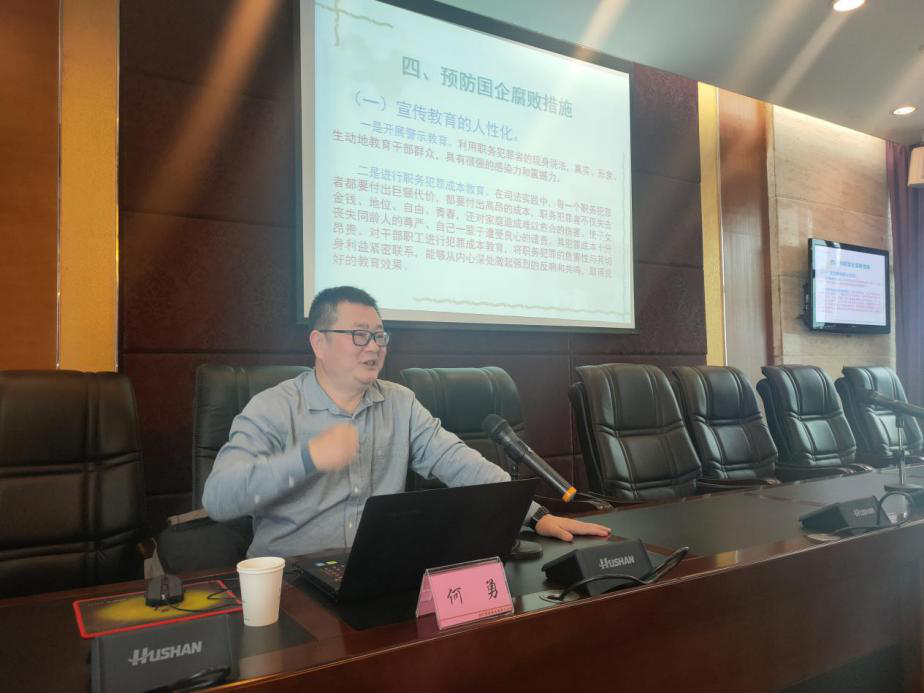 为进一步增强公司干部职工廉洁自律意识,提升拒腐防变能力,2021年12月29日,国产自拍 纪委举办了党风廉政建设专题讲座,邀请市纪委监委驻卫健委纪检监察组组长何勇为干部职工上了一堂生动的廉洁教育课。公司中层及以上干部、项目主管、关键岗位人员代表共计47人参加,讲座由公司纪委书记、工会主席杜科主持。