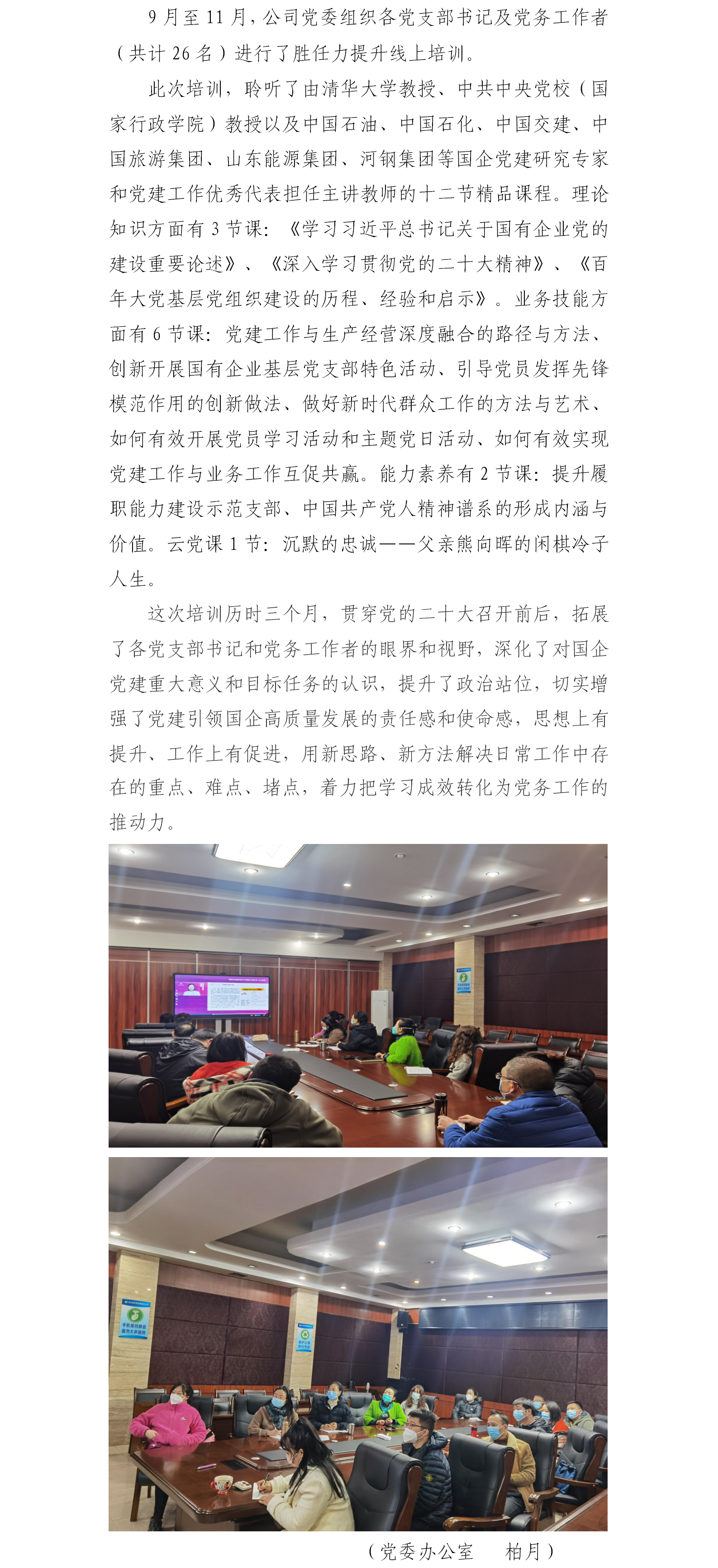 公司党委举办党支部书记(党务工作者)全覆盖线上培训