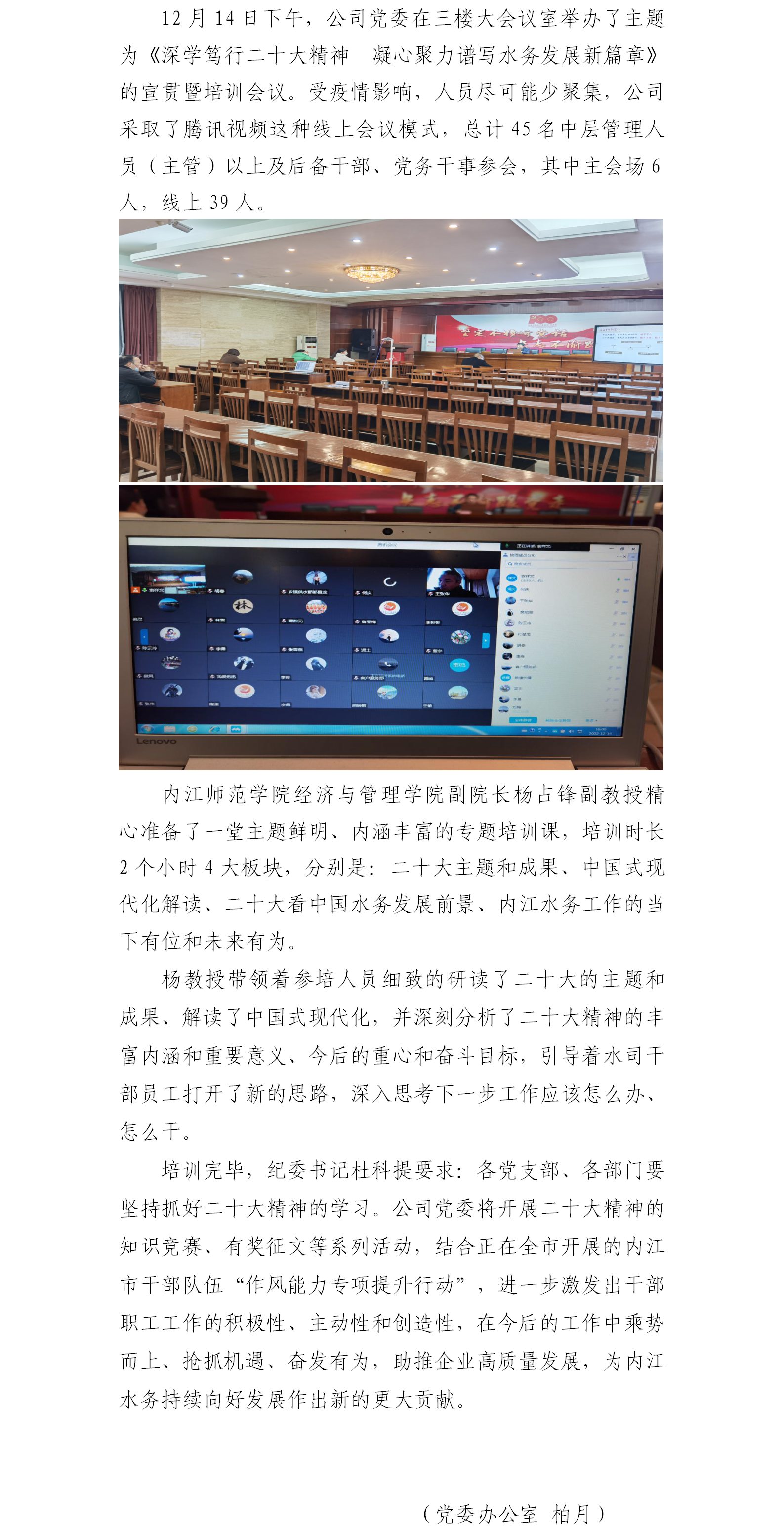 公司党委举办党的二十大精神宣贯暨干部培训会