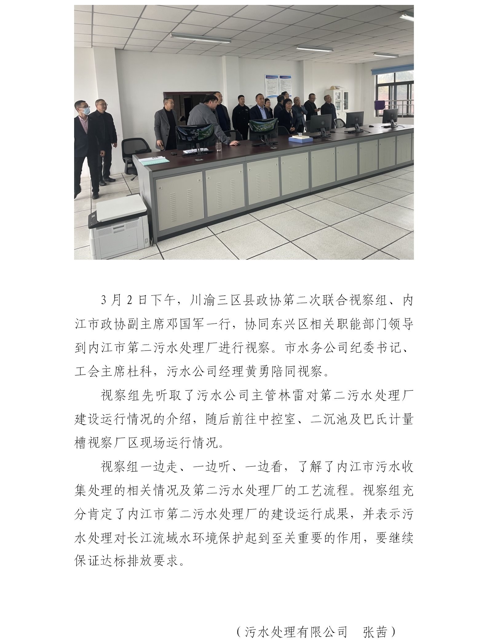 川渝三区县政协第二次联合视察组视察内江市第二污水处理厂