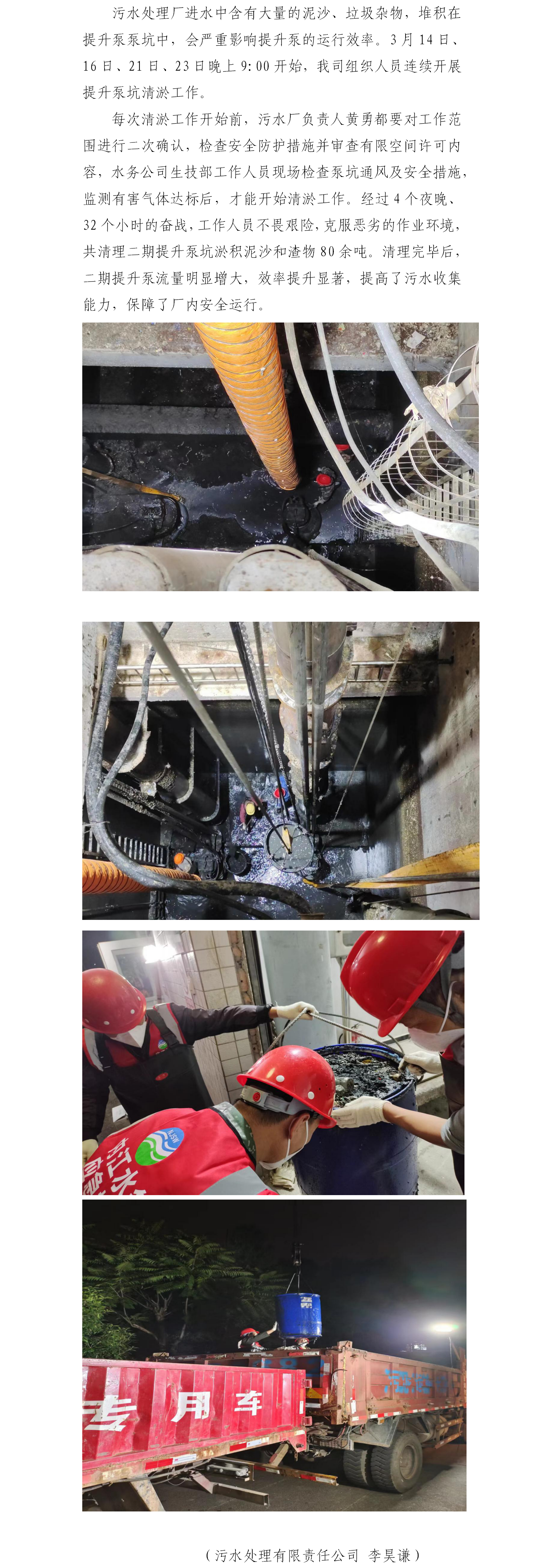 内江市污水处理有限责任公司泵坑清淤,提升设备运行效率