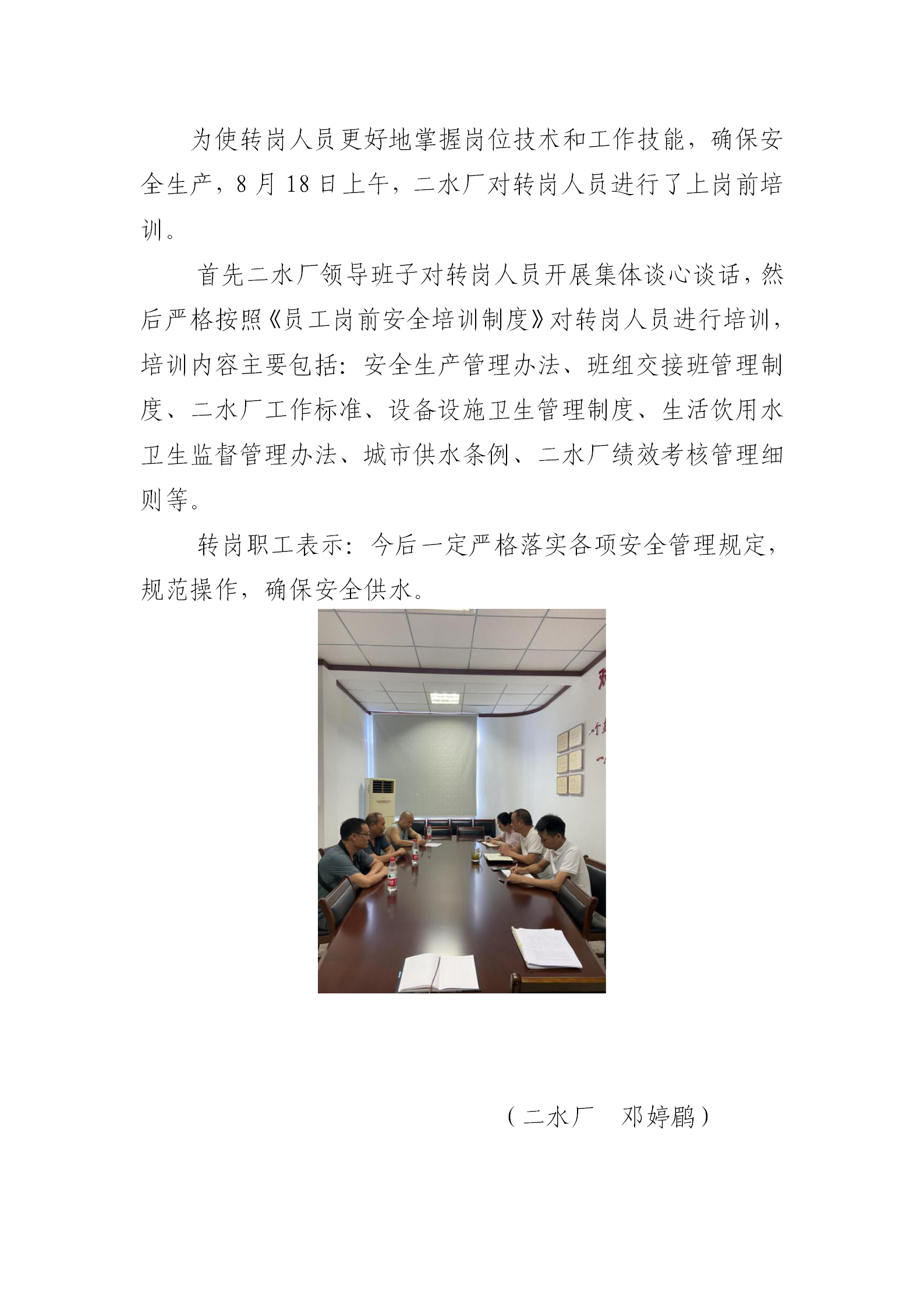 二水厂完成转岗人员岗前培训工作