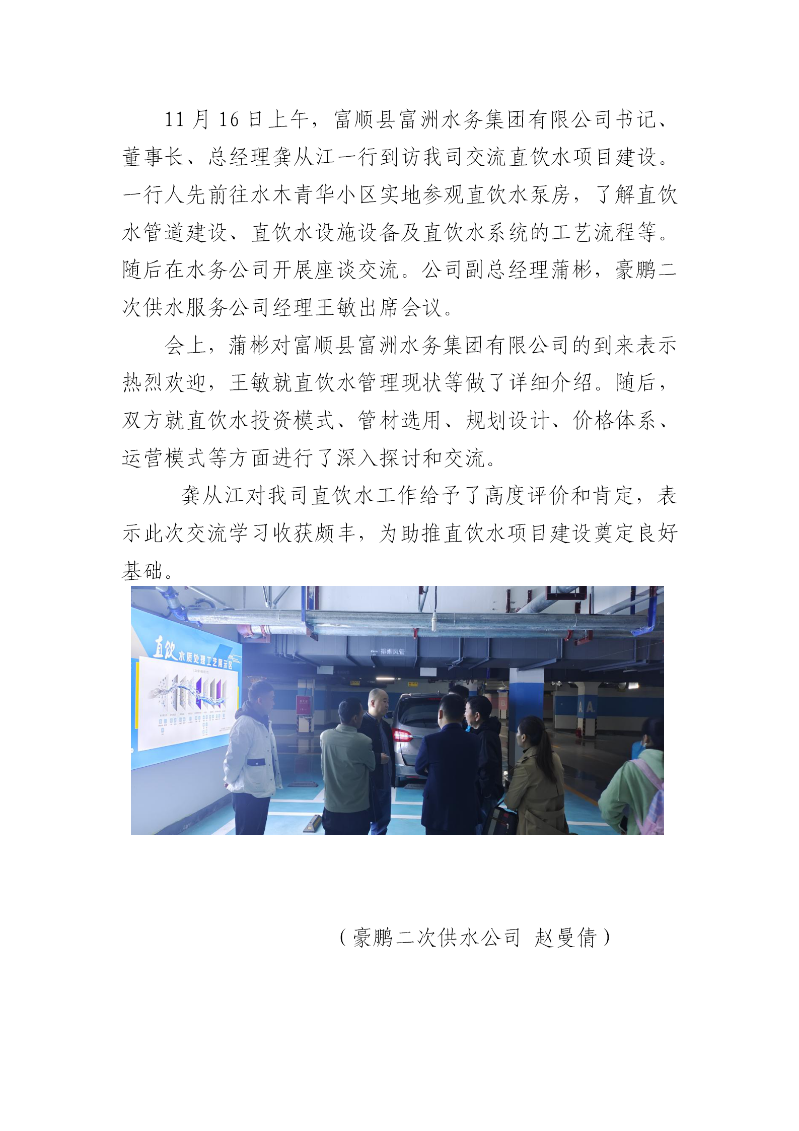 富顺县富洲水务集团有限公司到我司开展直饮水项目建设交流