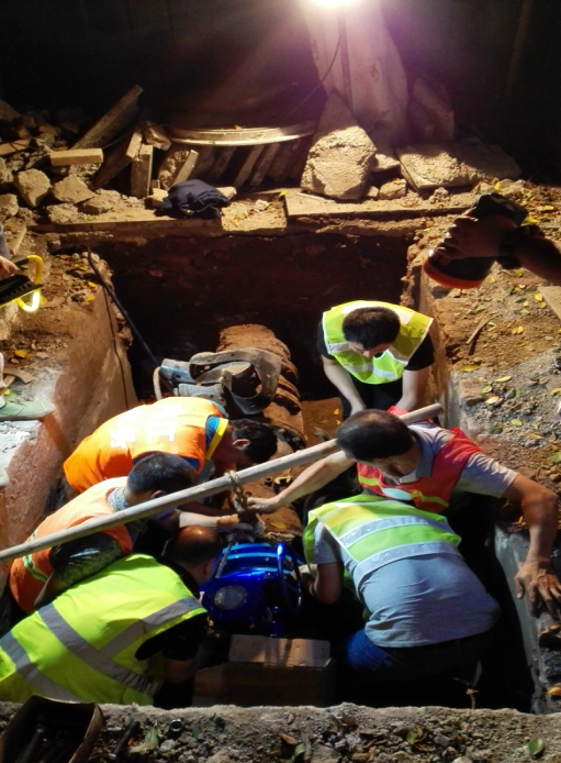在管网规划管理部、物资供应部、豪盛管道安装公司及工会等部门的紧密配合下,5月17日晚22时,管网运行部按改造实施方案对平安路两侧3台蝶阀进行了更换。为缩短停水时间,施工前管网运行部组织召开了两次施工分析会,制定了工作方案,并对施工现场提前组织开挖,设置安全围挡、照明等安全设施,为顺利实施蝶阀更换做好充分准备。施工中,维修人员们克服深夜疲劳、操作场地狭小等不利因素,特别是杨孝成,邓轶峰、刘超、程建军等冒着高温天气及氧焊的热浪,在弱电管线交错纵横的狭窄空间里拆卸生锈螺栓,安装更新蝶阀。经过7个多小时连续作业,在18日凌晨5时顺利完成此次改造工作,比预期通水时间提前1个小时,保证了周边用户正常用水。