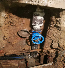 2017年6月8日晚,管网运行部接到群众电话,反映工商街大面积停水。经抢维修人员到现场排查,发现供水管道井内DN200铸铁管被污水严重锈蚀,导致供水主管破裂,造成了工商街沿线大面积停水。由于天气闷热,加上工商街又是商铺和居民密集地,管网运行部决定冒雨连夜抢修,同时派送水车给附近居民送水。经过7个多小时连续作业,在6月9日凌晨1:30分完成抢修,凌晨6:30分恢复供水,保证了周边用户正常用水。