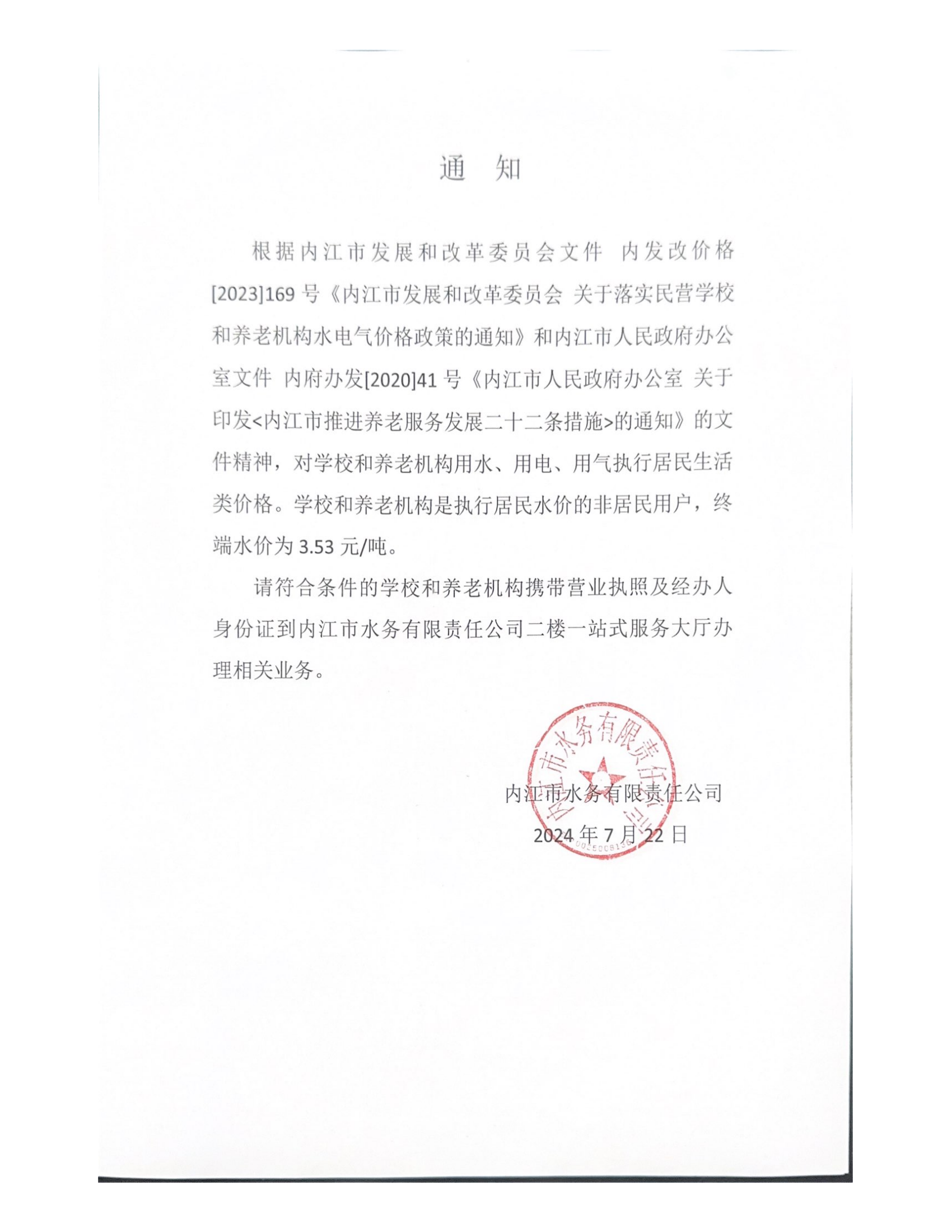 国产自拍 关于养老机构、学校执行生活用水价格的通知